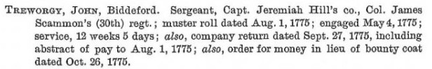 Perhaps it never will, but we certainly hope to be able to make a good start at creating one. In January I sent this e-mail to our PPHS President, Sylvia Trueworthy Pease. Her Revolutionary ancestor was John Trueworthy born in Biddeford in 1739.
