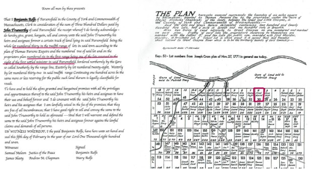 The 1790 Census shows his family still residing in Biddeford but they later took up residency in Phippsburg where in 1803 John served as constable and was required to collect taxes of several people in the town. Perhaps that was not to his liking because in February of 1807 he bought a parcel of land from Benjamin Rolfe in Parsonsfield. Rolfe was the first settled minister of the town.